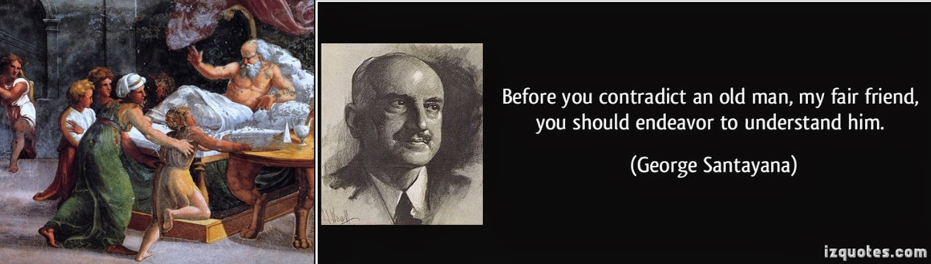 Δεν υπάρχει ποιο ευχάριστο πράγμα για ένα ηλικιωμένο να είναι γεμάτος με ελπίδες να είναι αισιόδοξος, ζωηρός, ευχαριστημένος, ενθουσιασμένος από την δουλεία του. Να το ακτινοβολείτε στο περιβάλλον του, είτε έχει γράψει βιβλία, είτε έχει μεγαλώσει την οικογένεια του είτε έχει πολεμήσει για την χωρά του είτε για τα δανικά του. Τα γηρατειά δεν είναι παρακμή, αλλά δημιουργικότητα. Είναι η ανάπτυξη και η ωριμότητα της εσωτερικής ζωής του ανθρώπου για ένα ωραίο τέλος, γαλήνιο και ευχάριστο. Είναι ένας πραγματικός ενήλικος που στην ζωή που θα ζήσει μόλις φύγει από εδώ θα ξέρει πως να την ζήσει.