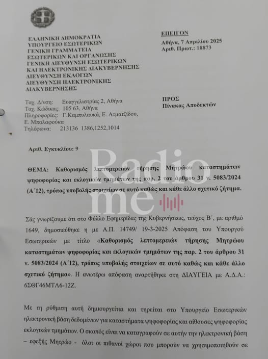 Το radiome.gr παρουσιάζει το έγγραφο του ΥΠΕΣ που τις τελευταίες εβδομάδες έχει προκαλέσει τεράστιο ψίθυρο για προετοιμασία τυχόν πρόωρων εκλογών που έρχεται να ενισχυθεί τώρα με την αποκάλυψη του σκανδάλου ΟΠΕΚΕΠΕ.