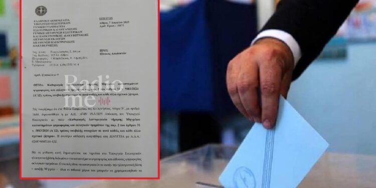 Έγγραφο από το Υπουργείο Εσωτερικών με τον χαρακτηρισμό “ΕΠΕΙΓΟΝ” σε όλους τους δήμους έχει φτάσει τις τελευταίες εβδομάδες προκαλώντας αναστάτωση και ενισχύοντας τα σενάρια για προετοιμασία πρόωρων εκλογών με το οποίο ζητείται να γίνει έλεγχος στις εγκαταστάσεις του Wifi και των κλιματιστικών στις αίθουσες που χρησιμοποιούνται ως εκλογικά κέντρα με βάση τις ακριβώς προηγούμενες εκλογές! Αν έχουν υπάρξει τροποποιήσεις, υπάρχει προσβασιμότητα κλπ.