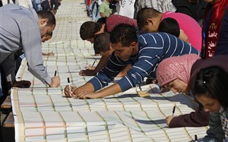 Μια διαφορετική, ειρηνική διαμαρτυρία πραγματοποιήθηκε σήμερα στην Παλαιστίνη. Ένα γράμμα υποστήριξης, 250 (!) μέτρων υπέγραψαν Παλαιστίνιοι ως κίνηση διαμαρτυρίας για τους φυλακισμένους τους στις ισραηλινές φυλακές. Η διαμαρτυρία έλαβα χώρα στην δυτική όχθη και συγκεκριμένα στο Tulkarm.