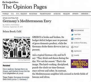 Για φθόνο των Γερμανών απέναντι στους μεσογειακούς λαούς κάνουν λόγο οι New York Times σε άρθρο που υπογράφει ο Αμερικανός συγγραφέας και οικονομολόγος Todd Buchholz…