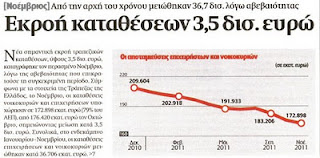 Δηλαδή για το 2011 (αν υπολογίσουμε άλλα τόσα για τον Δεκέμβριο) πέρασε τα ΣΑΡΑΝΤΑ Δισ Ευρώ !!!