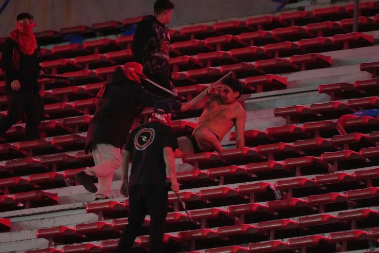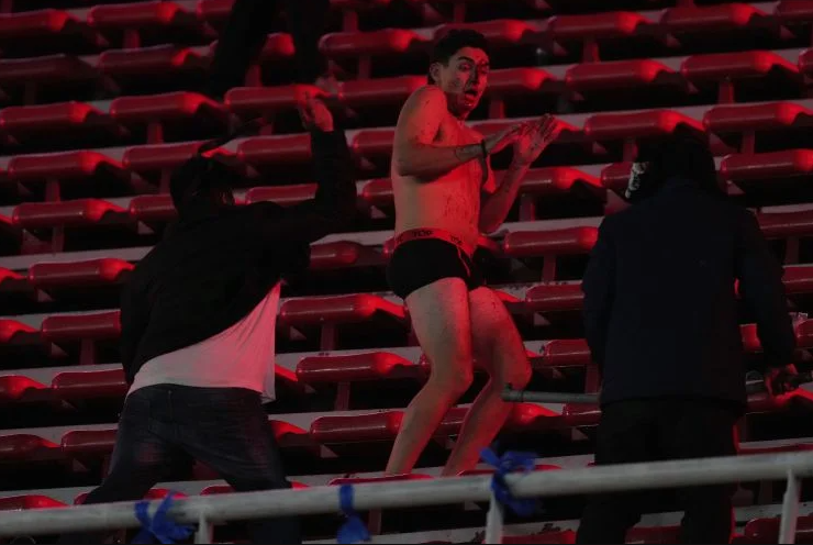 Η ένταση ξεκίνησε στο πρώτο ημίχρονο, όταν περίπου 3.000 Χιλιανοί οπαδοί, τοποθετημένοι σε υψηλή εξέδρα πάνω από τους οπαδούς της ομάδας της Μπουένος Άιρες, εκτόξευσαν καθίσματα, πέτρες και ρόπαλα. Οι εικόνες δείχνουν μέχρι και αναμμένα καθίσματα και εκρήξεις βομβών θορύβου. Η αστυνομία και η ασφάλεια του γηπέδου δεν επενέβησαν. Στην αρχή του δευτέρου ημιχρόνου, οπαδοί της Ιντεπεντιέντε εισήλθαν στον αγωνιστικό χώρο, πυροδοτώντας κυριολεκτικά «κυνήγι» των φιλάθλων της Ουνιβερσιδάδ ντε Τσίλε. Οι εικόνες δείχνουν ξυλοδαρμούς, γυμνώματα και έναν άνδρα να πέφτει από ύψος περίπου 10 μέτρων.