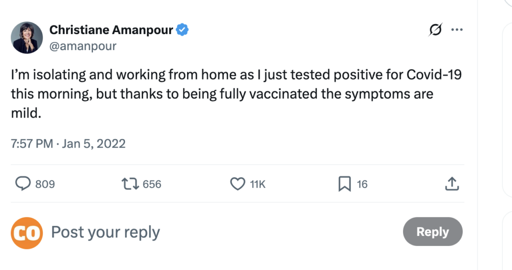 Ήταν 5 Ιανουαρίου 2020 όταν η διάσημη παρουσιάστρια του CNN ανακοίνωνε ότι ήταν θετική στον COVID και ότι τα συμπτώματά της ήταν ήπια επειδή είχε ήδη “προλάβει” να εμβολιαστεί πλήρως!