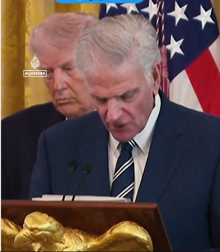 Εμβρόντητη η διεθνής κοινότητα παρακολουθεί το θρησκευτικό παραλήρημα του πλανητάρχη και του συρφετού του… H απόλυτη παρακμή της πολιτικής σκηνής των ΗΠΑ πόσο χαμηλά μπορείς να πέσεις όταν πέσεις σε θρησκευτική πλάνη και είσαι δημόσιο πρόσωπο. Ο κύκλος των μεσσιανιστών του Ισραήλ βυθίζει στην απόλυτη ανυποληψία τις ΗΠΑ.. προκαλεί πλέον θυμηδία η κατάσταση παρά τις τραγωδίες που επισυνάπτει..
