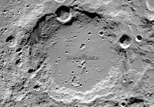 Κοντά στο νότιο πόλο του φεγγαριού που δεν είναι ορατος από τη Γη, βρισκεται ο κρατήρας Zeeman (ναυτης).