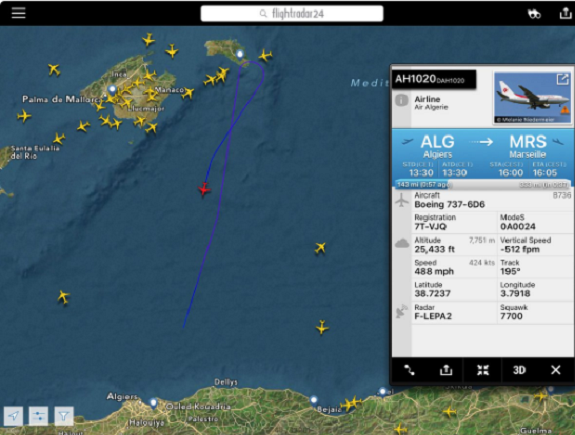 Το αεροσκάφος απογειώθηκε σήμερα το απόγευμα από το Αλγέρι και είχε προορισμό τη Μασσαλία της Γαλλίας. Ωστόσο, λίγη ώρα μετά την απογείωσή του εξέπεμψε SOS.