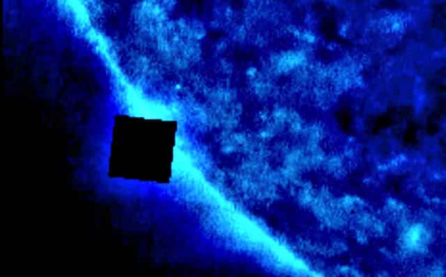 Προσέξτε την άλω του ήλιου στην περιοχή που βρίσκεται το μαύρο τετράγωνο. Εκτείνεται ή αλλιώς «τυλίγει» και το ίδιο το αντικείμενο.