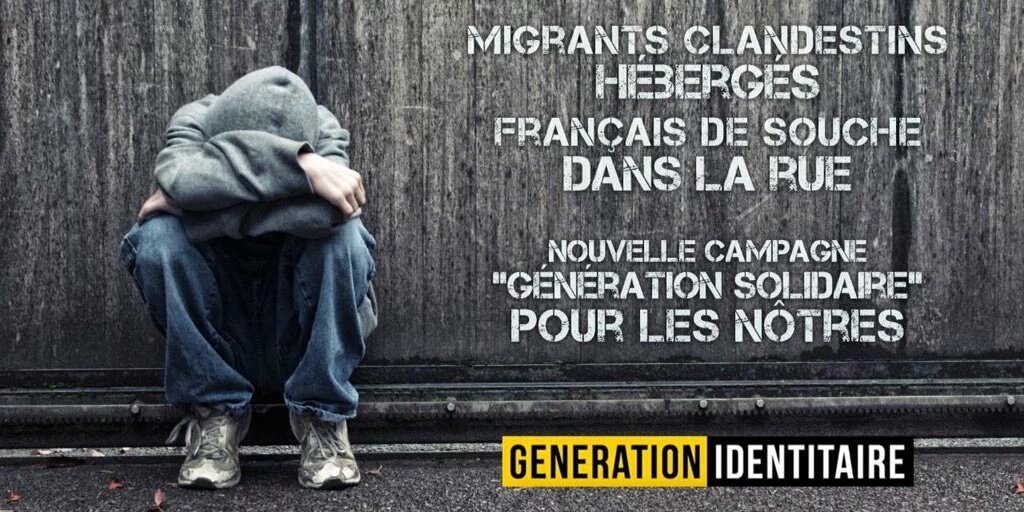 Το 2012, ο “Bernard,” ένας Γάλλος άστεγος, πέθαινε από το κρύο στους δρόμους του Παρισιού. Ήταν ένας πρώην λεγεωνάριος, που εγκαταλείφθηκε από το σοσιαλιστικό κράτος. Θορυβημένοι από αυτή την τραγωδία, οι ακτιβιστές της Generation Identitaire ξεκίνησαν σε όλη τη Γαλλία την πρώτη εκστρατεία Γενιάς της Αλληλεγγύης: Ζεστά γεύματα, καφές, ρούχα, κάποια άνεση, ώστε να βελτιωθεί κάπως η ζωή αυτών των Γάλλος που ζουν στους δρόμους.