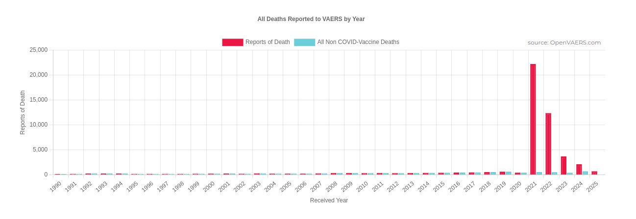 1. Περισσότεροι θάνατοι έχουν αναφερθεί στο VAERS μετά από εμβόλια COVID από ό,τι όλα τα άλλα εμβόλια μαζί από τότε που ξεκίνησε η παρακολούθηση το 1990: https://openvaers.com/covid-data/mortality