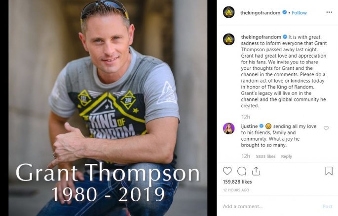 Ο πασίγνωστος Youtuber Γκραντ Τόμσον (Grant Thompson), ο οποίος είχε περισσότερα από 2,5 δισεκατομμύρια προβολές στο κανάλι του στο YouTube, πήγε για να κάνει αλεξίπτωτο πλαγιάς (το λεγόμενο «παρά πέντε») το βράδυ της Δευτέρας. Δυστυχώς ποτέ δεν επέστρεψε στο σπίτι, όπως αναφέρει χαρακτηριστικά ο αδερφός του, Mark, στο TMZ. Το κανάλι του βρισκόταν στην 321η θέση επισκεψιμότητας στο YouTube.