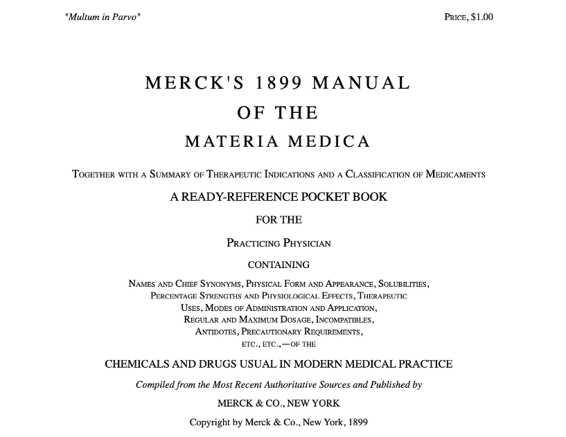 THE 1899 MERCK MANUAL: WHERE IT ALL BEGAN