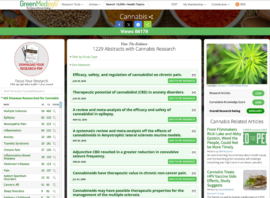 Στην πραγματικότητα, έχει υπάρξει μια εξαιρετική συσσώρευση έρευνας από ομοτίμους σχετικά με την κάνναβη και τον θεραπευτικό ρόλο των κανναβινοειδών στην ανθρώπινη υγεία, όπως αποδεικνύεται από τις 1229 μελέτες μόνο στη βάση δεδομένων μας