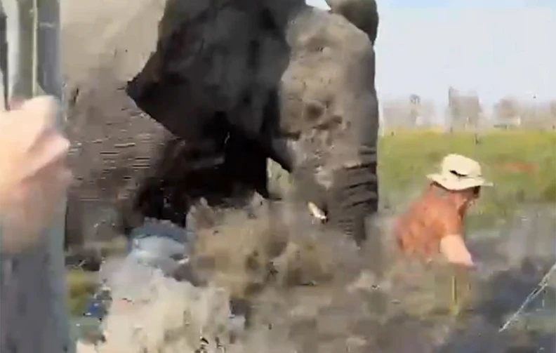 Ευτυχώς, ο ελέφαντας έχασε την άτυχη γυναίκα κάτω από τα θολά νερά του δέλτα και σταμάτησε να προσπαθεί να τη βρει μετά από μερικά δευτερόλεπτα. Το κοπάδι του πέρασε τελικά με ασφάλεια γύρω από τους τρομοκρατημένους τουρίστες.