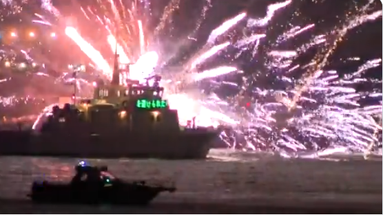 Η φωτιά ξέσπασε στις δύο από το οκτώ φορτηγίδες που χρησιμοποιούνταν για την εκτόξευση των πυροτεχνημάτων, όπως ανέφερε το ιαπωνικό κρατικό δίκτυο NHK επικαλούμενο αξιωματούχους της αστυνομίας και της ακτοφυλακής.