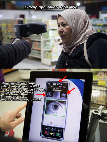 3. Και η τρίτη κατάσταση, επινοήθηκε και εφαρμόσθηκε από τον ΟΗΕ με το πρόγραμμα «Building Blocks Program». Αυτό είναι ένα πρόγραμμα που εφαρμόσθηκε στους πρόσφυγες, για το καλό τους φυσικά. Ο ΟΗΕ εξαναγκάζει τους πρόσφυγες, δηλαδή τους ατάκτους εφορμούντες εισβολείς, να τους σαρώνουν (σκανάρουν) την ίριδα των ματιών τους ώστε να τους δίνουν κατόπιν δωρεάν μερίδες τροφίμων.