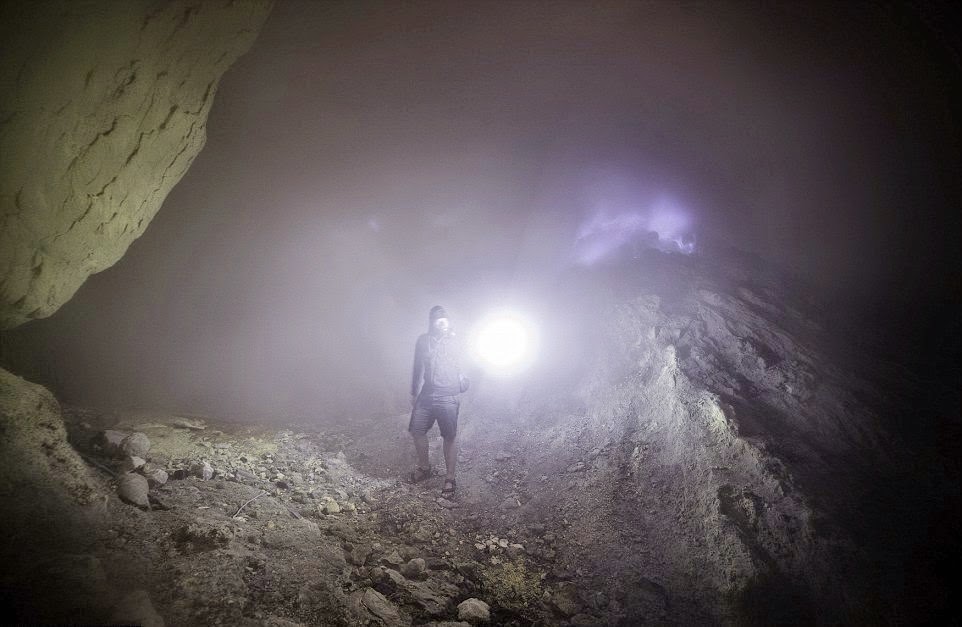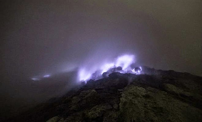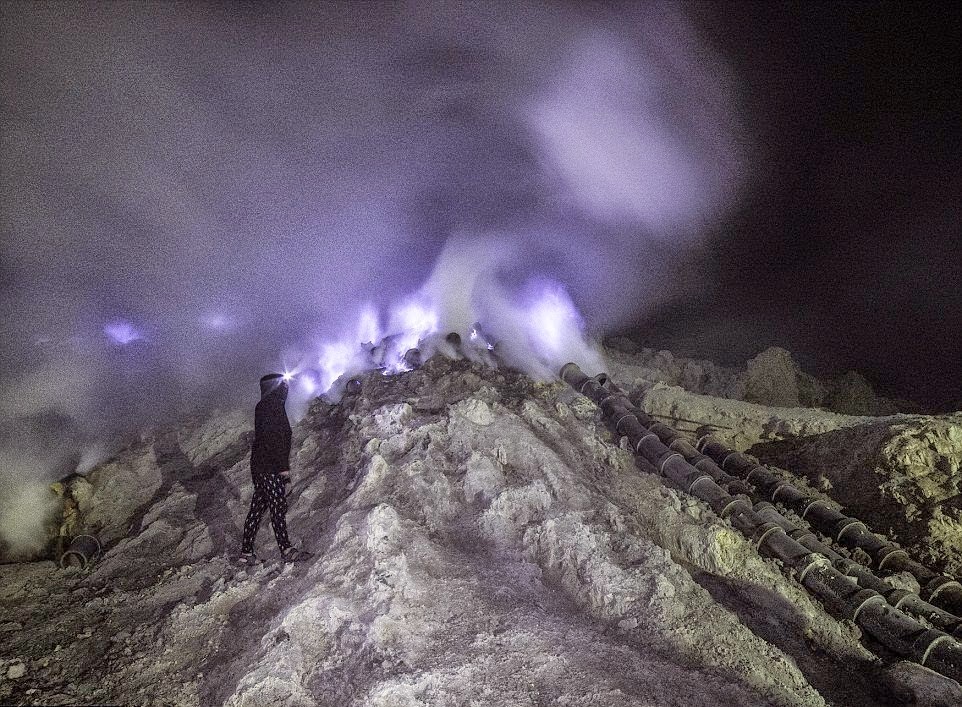 Το ηφαίστειο, γνωστό και ως Ijen, που βρίσκεται ανατολικά της Ινδονησίας, αναβλύζει θείο, που εκμεταλλεύονται τοπικοί συλλέκτες ορυκτών.