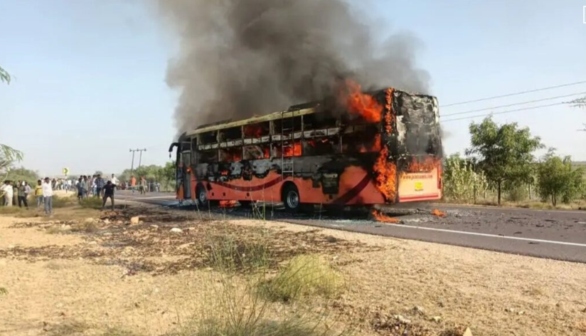 ରାଜସ୍ଥାନ ରାଜରାସ୍ତାରେ ବଡ଼ ଦୁର୍ଘଟଣା । ହଠାତ୍ ନିଆଁ ଲାଗିଗଲା ଯାତ୍ରୀବାହୀ ବସ୍ରେ, ୧୨ ଜଣଙ୍କ ଗଲା ଜୀବନ#Rajastan #BusFire #Odisha #KanakNews pic.twitter.com/DXQMfsdyBm— Kanak News (@kanak_news) October 14, 2025