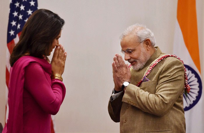 Τώρα η Gabbard αυτοπροσδιορίζεται ως μέλος της ινδουιστικής αίρεσης ‘Gaudiya Vaishnavism’. Είναι η αίρεση της οποίας πιστός είναι ο ηγέτης της Ινδίας, Ναρέντρα Μόντι (Narendra Modi). Ο Μόντι ανήκει στο κόμμα ‘Bharatiya Janata Party’, ή BJP, που είναι γνωστό στην Ινδία για τις σκληροπυρηνικές δεξιές πολιτικές του. Υπήρξε κυβερνήτης της πολιτείας του Γκουτζαράτ κατά τη διάρκεια ταραχών του 2002, όπου σκοτώθηκαν πάνω από 2.000 μουσουλμάνοι.