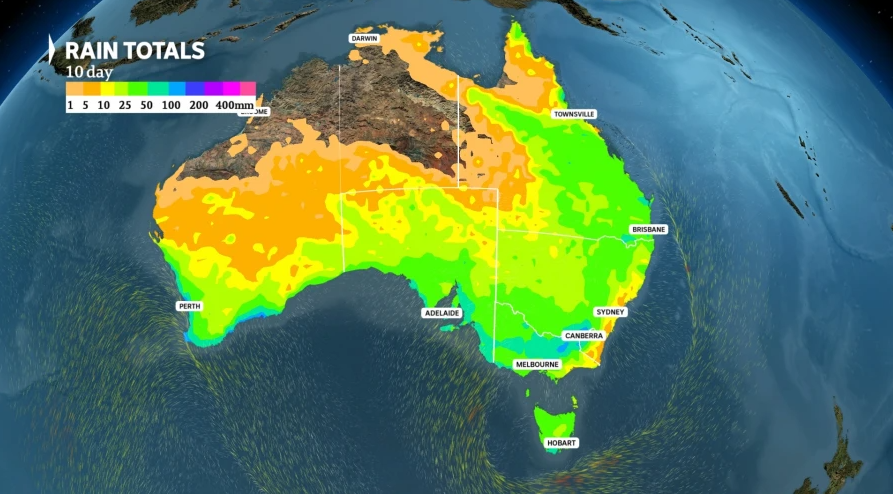 Στην Αυστραλία, που έχει χτυπηθεί από σημαντική ξηρασία τα τελευταία δύο χρόνια, αναμένονται τρία διαδοχικά συστήματα χαμηλής πίεσης που πρόκεται να δώσουν βροχές σε όλες σχεδόν τις γεωργικές περιοχές της χώρας.