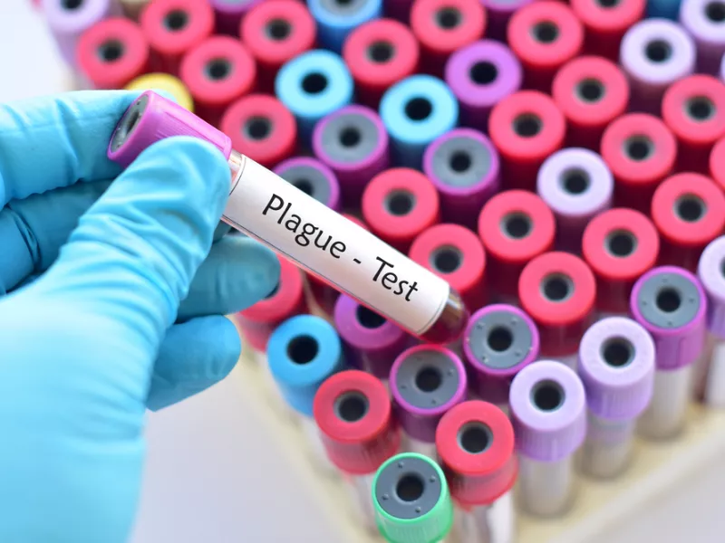 Η μόλυνση προκαλείται από το βακτήριο Yersinia pestis και μεταδίδεται στους ανθρώπους μέσω δαγκωμάτων από μολυσμένους ψύλλους ή επαφής με μολυσμένα ζώα.