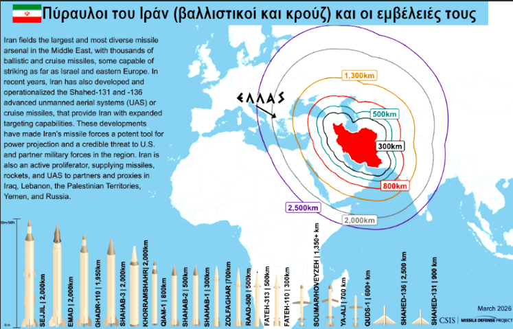 Τώρα, στον πόλεμο του Ιράν, δώσαμε αντιπυραυλικά συστήματα «Πάτριοτ» στην Σαουδική Αραβία, τα οποία λείπουν και θα λείψουν από την Ελλάδα την δεδομένη στιγμή. Δώσαμε και την νεοτάτη φρεγάτα «Κίμων» για να ελέγχει, σύμφωνα με διάφορα δημοσιεύματα, τον ευρύτερο εναέριο χώρο πρώτα του Ισραήλ και μετά των αγγλικών βάσεων στην Κύπρο. Η Κύπρος χρησιμοποιείται ως δικαιολογία για να μην διαμαρτυρηθούν οι Έλληνες. Μια Κύπρος  που τώρα «δεν κείται μακράν». Αλλά ούτε και ο αποβατικός στόλος των τούρκων «κείται μακράν». Την ίδια περίοδο ο Δένδιας έπληξε και το ηθικό του προσωπικού των ΕΔ με τα μέτρα του.