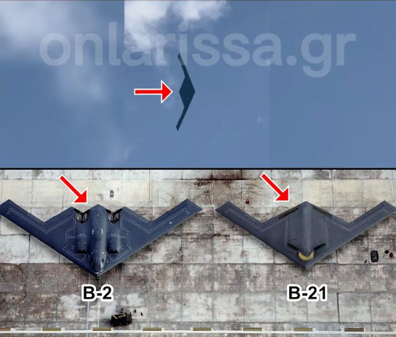 Κατ’ αρχήν το θεασάμενο στην Λάρισα αεροσκάφος δεν είναι B-2 (“Β” σημαίνει bomber, βομβαρδιστικό) αλλά Β-21. Μάρτυς το τμήμα των ακροφυσίων των κινητήρων. Το Β-21 είναι η εξέλιξη του Β-2. Είναι στρατηγικό βομβαρδιστικό με τεχνολογία «στέλθ», δηλαδή είναι αόρατο στα ραντάρ και το οποίο τέθηκε σε υπηρεσία το 2023. Πρώτη του κανονική πτήση ήταν ο 2024. Κατακαινούργιο είναι το άτιμο. Αυτό έχει σχεδιασθεί ειδικά για επιχειρήσεις σε Ινδικό και Ειρηνικό ωκεανό και έχει ακτίνα δράσης μεγαλύτερη των 11.000 χλμ. Μπορεί να φέρει δε πυρηνικές βόμβες, θερμοπυρηνικές βόμβες και πυρηνικές βόμβες τύπου κρούζ.  Δηλαδή ξεκινώντας από το έδαφος των ΗΠΑ μπορεί να βομβαρδίσει Πεκίνο και Τεχεράνη με την βοήθεια ιπταμένων τάνκερ κατά την επιστροφή. Επιπλέον, και οι πύραυλοι κρούζ που φέρει έχουν κι αυτοί εμβέλεια μεγαλύτερη των 1.000 χλμ. Επισήμως, συντηρήσεις και επισκευές αυτού του ολοκαίνουργιου αεροσκάφους γίνονται σε βάσεις στην Οκλαχόμα και Καλιφόρνια. Πάντως όχι στην Λάρισα.