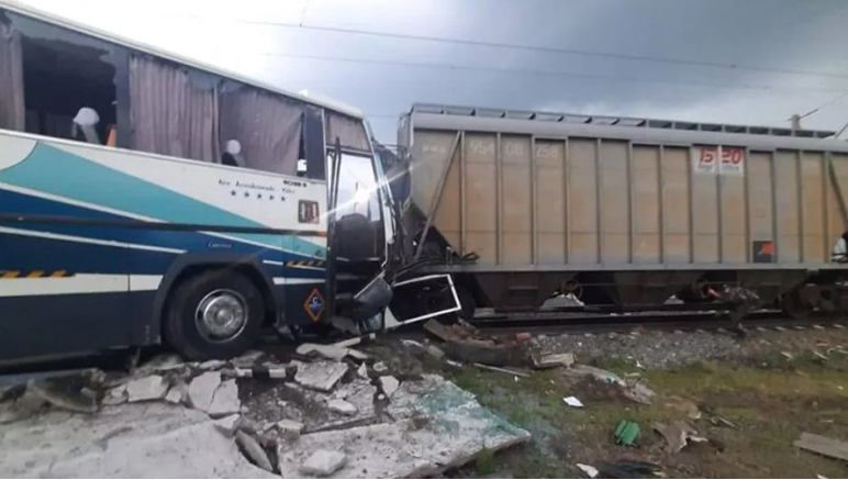 «Ο οδηγός του λεωφορείου παραβίασε διάβαση ενώ πλησίαζε το τρένο», ανακοίνωσε η σιδηροδρομική διοίκηση στην εφαρμογή ανταλλαγής μηνυμάτων Telegram.