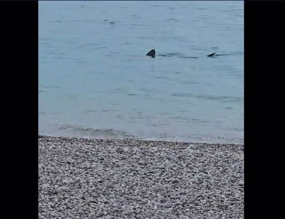 Πρόκειται για καρχαρία (4-5 μέτρων) και αμέσως έγινε θέμα συζήτησης και πολλοί ήταν εκείνοι που τράβηξαν βίντεο.