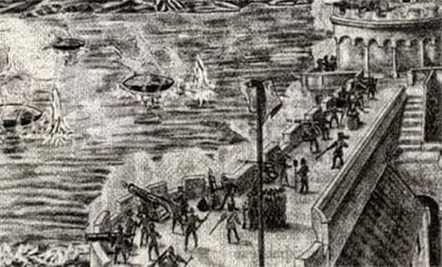 Οι στρατιώτες του φρουρίου πραγματοποίησαν περισσότερα από οκτακόσια χτυπήματα με τα κανόνια τους για να εκδιώξουν τους εισβολείς, χωρίς να καταφέρουν να προκαλέσουν έστω και ένα βαθούλωμα στην επιφάνεια των αντικειμένων.