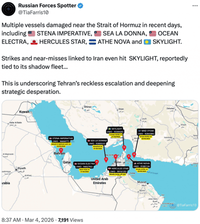 Τι σημαίνει αυτό; Ότι το Κατάρ σταματά επίσημα τις παραδόσεις LNG και λιπασμάτων γιατί είναι αδύνατο να βγουν τα πλοία από τα Στενά. Τα συμβόλαια ακυρώνονται νομικά. Η Κίνα, η Ινδία και η Νότια Κορέα μένουν χωρίς ενέργεια και πρώτες ύλες για τα χωράφια τους.