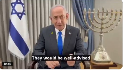 Προσθέτει: «Θα ήταν καλό να λάβουν υπόψη τις προειδοποιήσεις μας. Απαιτώ δράση από αυτούς ΤΩΡΑ, αλλιώς θα υπάρξουν συνέπειες». Ο Νετανιάχου απειλεί τώρα μετά το Ιράν και τη Δύση…