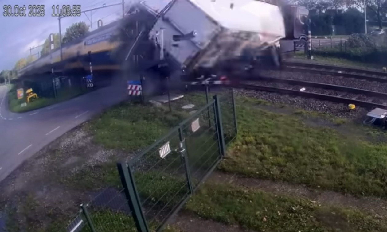 Πέντε άνθρωποι τραυματίστηκαν σε σοκαριστικό τροχαίο ατύχημα που συνέβη σε σιδηροδρομική διάβαση στο Μέετερεν, στην Ολλανδία την Πέμπτη, όταν τρένο συγκρούστηκε με φορτηγό που είχε παγιδευτεί στις μπάρες.