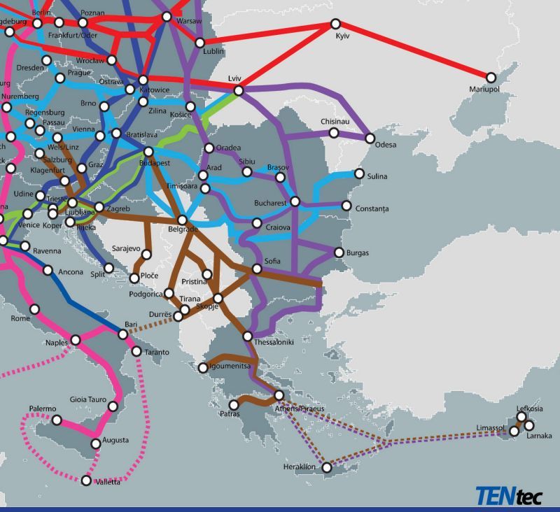 Τον Απρίλιο του 2025, η Ευρωπαϊκή Επιτροπή παρουσίασε ένα σχέδιο για την ενσωμάτωση βασικών οδών μεταφορών της ΕΕ στο Διευρωπαϊκό Δίκτυο Μεταφορών (ΔΕΔ-Μ) και στα Διευρωπαϊκά Δίκτυα Ενέργειας (ΔΕΔ-Ε). Το σχέδιο περιλαμβάνει επίσης την επέκταση του σιδηροδρομικού δικτύου μέχρι τη Μαριούπολη στη Ρωσία.