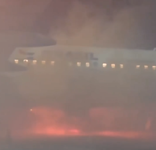 Σύμφωνα με τοπικά μέσα ενημέρωσης οι καπνοί από τη φωτιά πέρασαν στο αεροπλάνο με αποτέλεσμα να προκληθεί πανικός ανάμεσα στους 180 επιβάτες.