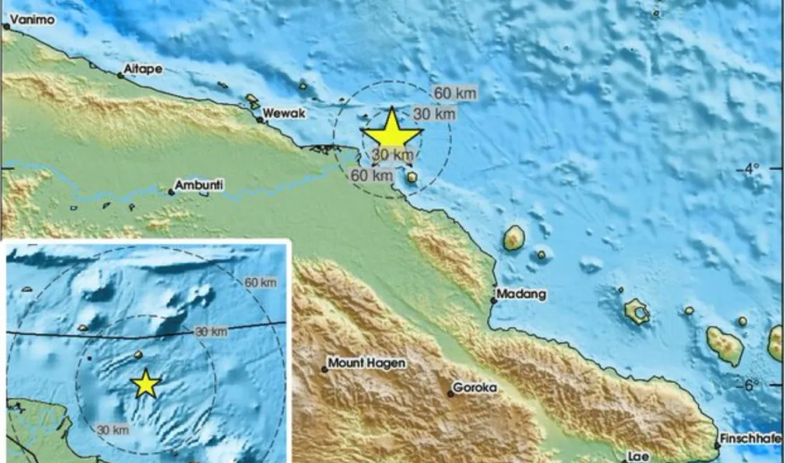 Το επίκεντρο του σεισμού στη Παπούα Νέα Γουινέα εντοπίζεται περίπου 80 χιλιόμετρα βορειοανατολικά του Άνγκοραμ και το εστιακό βάθος υπολογίζεται σε 10 χιλιόμετρα