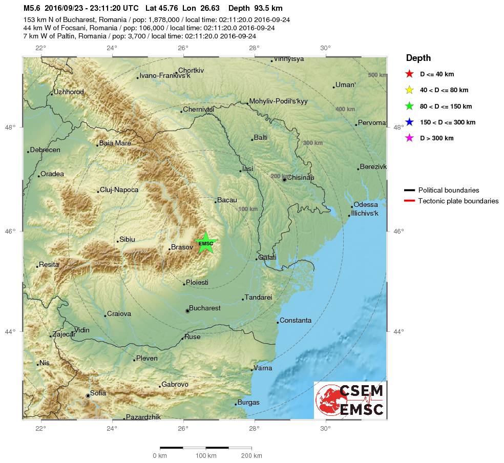 Πολύ ισχυρή σεισμική δόνηση 5,6 βαθμών της κλίμακας ρίχτερ συνέβη το βράδυ στη Ρουμανία.
