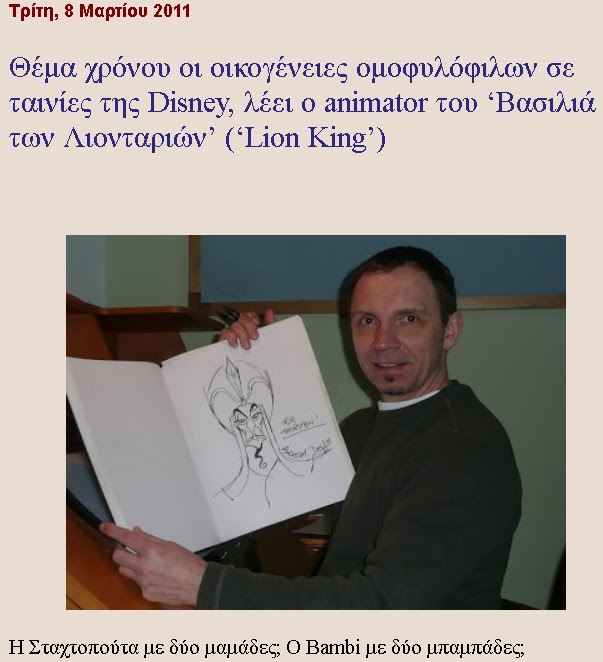ΥΓ: Σήμερα η Disney προωθεί τις ετήσιες συναντήσεις «Gay and Lesbian day at Walt Disney World». Επέτρεψε να εμφανιστούν ο Μίκυ Μάους και ο Ντόναλντ Ντοκ σαν αγαπημένοι ομοφυλόφιλοι, ενώ η Μίνι Μάους και η Νταίζη Ντακ ως λεσβίες. H Ντίσνευ βελτίωσε τις υγειονομικές παροχές των ομοφυλόφιλων υπαλλήλων της οι οποίοι «ζουν» μαζί. Αυτό όμως δεν εφαρμόστηκε στα ετερόφυλα ζευγάρια.