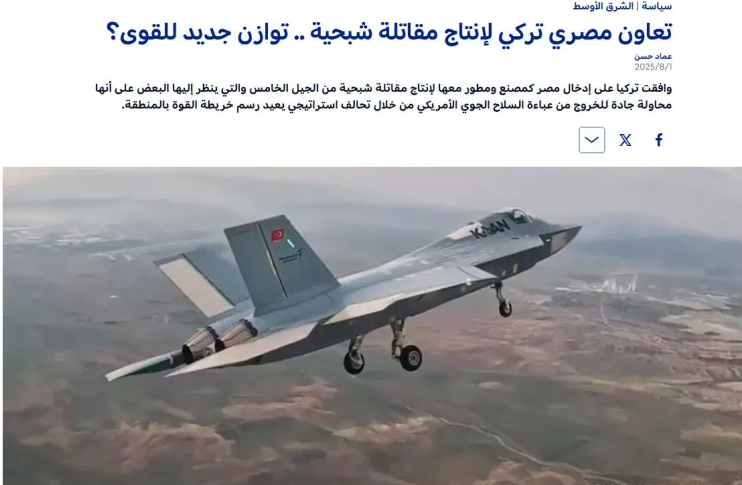 Σύμφωνα με δημοσιεύματα των τουρκικών μέσων ενημέρωσης πριν από λίγες ημέρες, η τουρκική πολιτική ηγεσία συμφώνησε να συμπεριλάβει την Αίγυπτο στο έργο παραγωγής αεροσκαφών stealth KAΑN, ως συμπαραγωγό και κατασκευαστή μαζί με την Τουρκία, σε ένα ιστορικό βήμα προς την ενίσχυση της περιφερειακής αμυντικής συνεργασίας μεταξύ των δύο χωρών.