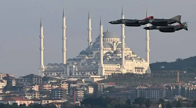 Μαχητικά αεροσκάφη της Τουρκικής Πολεμικής Αεροπορίας πραγματοποιούν στρατιωτική παρέλαση πάνω από το Στενό του Βοσπόρου, γιορτάζοντας την εκατονταετηρίδα από την ίδρυση της Τουρκικής Δημοκρατίας στην Κωνσταντινούπολη στις 29 Οκτωβρίου 2023.Φωτογραφία από: Ozan Kose