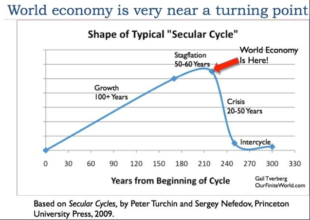 Ο ερευνητής Peter Turchin έχει μελετήσει το γενικό μοτίβο υπέρβασης και κατάρρευσης.