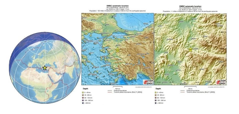 Ειδικότερα, σύμφωνα με το Ευρωμεσογειακό Σεισμολογικό κέντρο, το επίκεντρο του σεισμού ήταν 57 χιλιόμετρα Νοτιοανατολικά του Μπαλίκεσιρ και εστιακό βάθος επτά χιλιομέτρων.