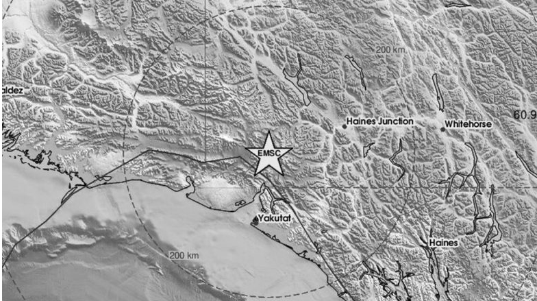 Ο σεισμός καταγράφηκε στις 20.41 ώρα Γκρίνουιτς (22.41 ώρα Ελλάδας) σε βάθος 10 χλμ., κοντά στην ακτή, στα σύνορα μεταξύ της Αλάσκας και καναδικού εδάφους Γιούκον, περίπου 250 χλμ. δυτικά από την πρωτεύουσα του, το Γουάιτχορς, και 370 χλμ. βορειοδυτικά του Τζούνο, της πρωτεύουσας της αμερικανικής πολιτείας Αλάσκα.