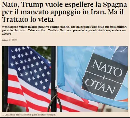 Το πρακτορείο EFE επικαλείται έναν εκπρόσωπο του ΝΑΤΟ, ο οποίος υπενθύμισε την Παρασκευή ότι η ιδρυτική συνθήκη της Συμμαχίας «δεν περιλαμβάνει κανένα άρθρο σχετικά με την αναστολή ή τον αποκλεισμό» οποιουδήποτε κράτους μέλους, μια αντίδραση που ήρθε μετά την αποκάλυψη ενός φερόμενου εσωτερικού email από το Υπουργείο Άμυνας των ΗΠΑ που υπονοούσε την πιθανότητα αναστολής της Ισπανίας από το ΝΑΤΟ μετά την άρνηση της χώρας να υποστηρίξει τις ΗΠΑ στον πόλεμο κατά του Ιράν.