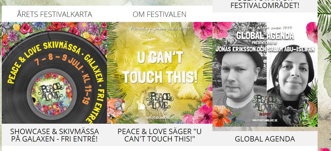 Προφανώς γνωρίζοντας το κύμα σεξουαλικών εγκλημάτων με δράστες μετανάστες που έχει σαρώσει τα διάφορα φεστιβάλ στην Σουηδία εδώ και χρόνια, για τα οποία ελάχιστα έχουν ακουσθεί δημόσια μέχρι τώρα, το ‘Peace & Love’ φεστιβάλ είχε φέτος και μία τέτοια «πρωτοβουλία» με την ρεκλάμα “U Can’t Touch This!” (Δεν μπορείς να το αγγίξεις αυτό!). Δηλώνοντας ότι θα «λάμβαναν μια σκληρή στάση κατά της σεξουαλικής παρενόχλησης κατά τη διάρκεια του φεστιβάλ», οι διοργανωτές είπαν ότι είχαν συνάψει συνεργασία με έναν τοπικό νομικό κέντρο «κατά των διακρίσεων» και καταφύγιο (κακοποιημένων) γυναικών, οι οποίοι θα παρείχαν “όργανα” για την εκδήλωση.