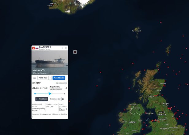 Το πετρελαιοφόρο έχει έκτοτε εντοπιστεί στα ανοικτά της Ιρλανδίας, με τις ΗΠΑ, το Ηνωμένο Βασίλειο, τη Γαλλία και την Ιρλανδία να διεξάγουν εναέρια παρακολούθηση αφού διέφυγε της αναχαίτισης από τις ΗΠΑ τον Δεκέμβριο, σύμφωνα με τους Times .