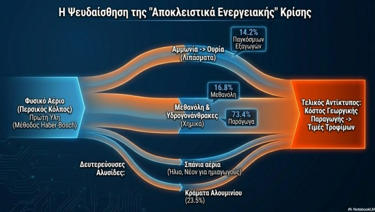 Αν και η Ελλάδα εισάγει λιπάσματα κυρίως από χώρες εκτός Κόλπου (π.χ. Αίγυπτο), επηρεάζεται έντονα έμμεσα μέσω της ανόδου των διεθνών τιμών. Αυτό επιβαρύνει το κόστος της εγχώριας αγροτικής παραγωγής και ενισχύει τις πληθωριστικές πιέσεις στα τρόφιμα για τα ελληνικά νοικοκυριά.