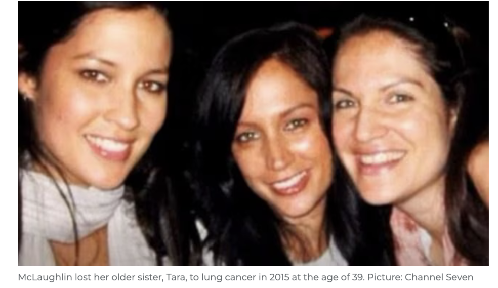 Η McLaughlin, η οποία εργάζεται ως πρέσβειρα του Πνευμονολογικού Ιδρύματος Αυστραλίας, παραδέχτηκε ότι ήταν σπαρακτική η κοινοποίηση της είδησης της δικής της διάγνωσης στην οικογένειά της, αφού είχε ήδη χάσει την αδερφή της, η οποία ήταν μητέρα δύο παιδιών, μια δεκαετία νωρίτερα.
