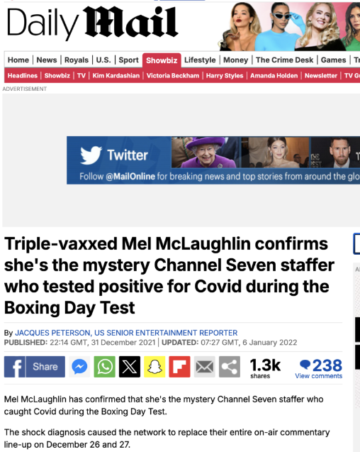 Η τριπλά εμβολιασμένη Mel McLaughlin επιβεβαιώνει ότι είναι η μυστηριώδης υπάλληλος του Channel Seven που βρέθηκε θετική στον Covid κατά τη διάρκεια του τεστ της Boxing Day