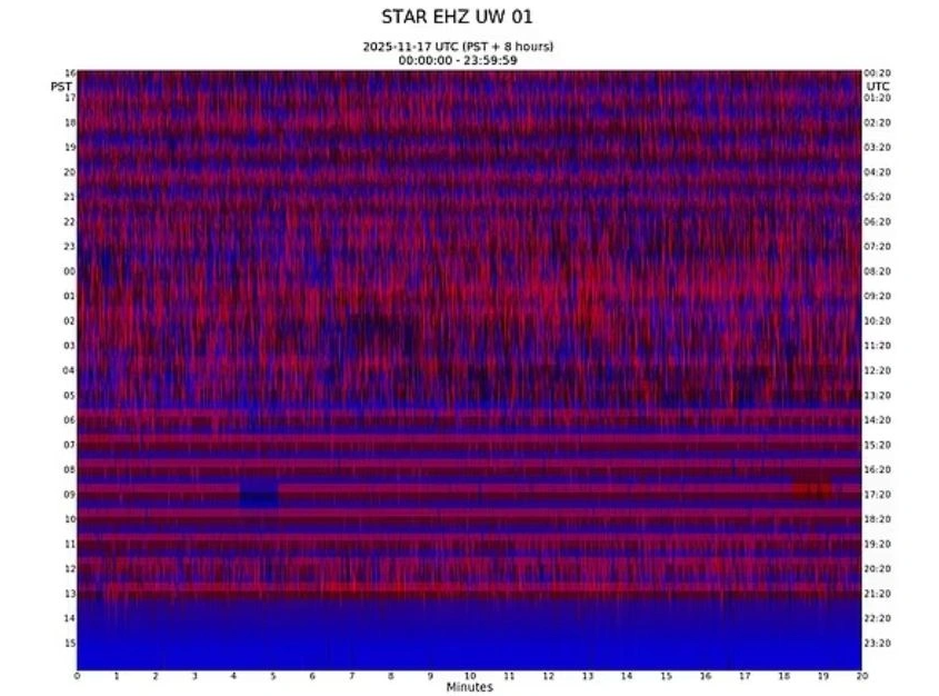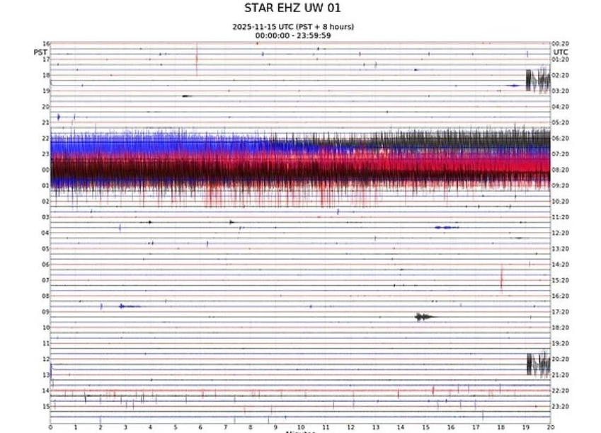 Το φαινόμενο εντόπισε το Pacific Northwest Seismic Network, καθώς οι σεισμογράφοι στην δυτική πλαγιά του βουνού έδειξαν τρεις συνεχόμενες ημέρες σημάτων υψηλής ενέργειας χωρίς ουσιαστικά διαλείμματα.